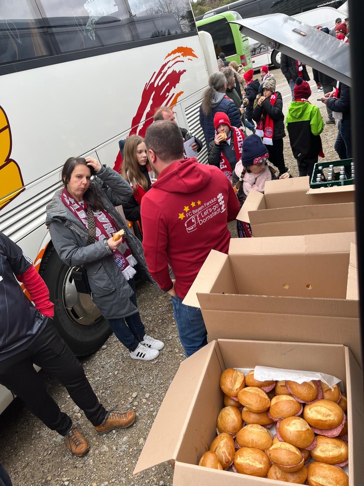 Die Brotzeit während der Busfahrt wurde vom Fanclub gesponsert, ein kleiner Dank für die überragende Resonanz in der ganzen laufenden Saison.